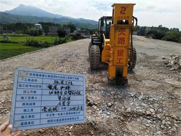 貴隆高速公路施工現(xiàn)場(chǎng),隨著一陣 “噠噠噠噠”脈沖式的液壓聲響,地下便呈現(xiàn)出了數(shù)個(gè)圓餅狀的凹坑,這是貴隆項(xiàng)目總承包部的液壓夯實(shí)機(jī)正在施工作業(yè)。在試用完**臺(tái)高速液壓夯實(shí)機(jī)后,天路重工憑借出色的表現(xiàn)獲得全線認(rèn)可,截至目前,貴隆高速全線共采用四臺(tái)天路重工高速液壓夯實(shí)機(jī)。